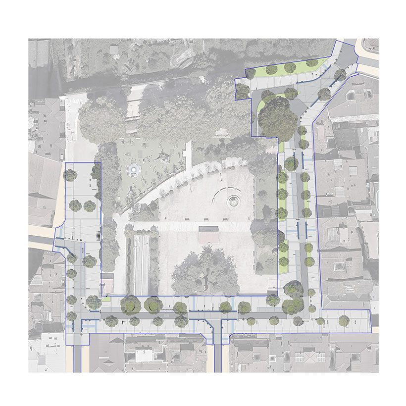 Los objetivos buscados han sido la puesta en valor del espacio público, la activación comercial del ámbito y la resolución de la conexión con el interior de la plaza, anteriormente aislado por unos viales en los que el tráfico rodado era protagonista.